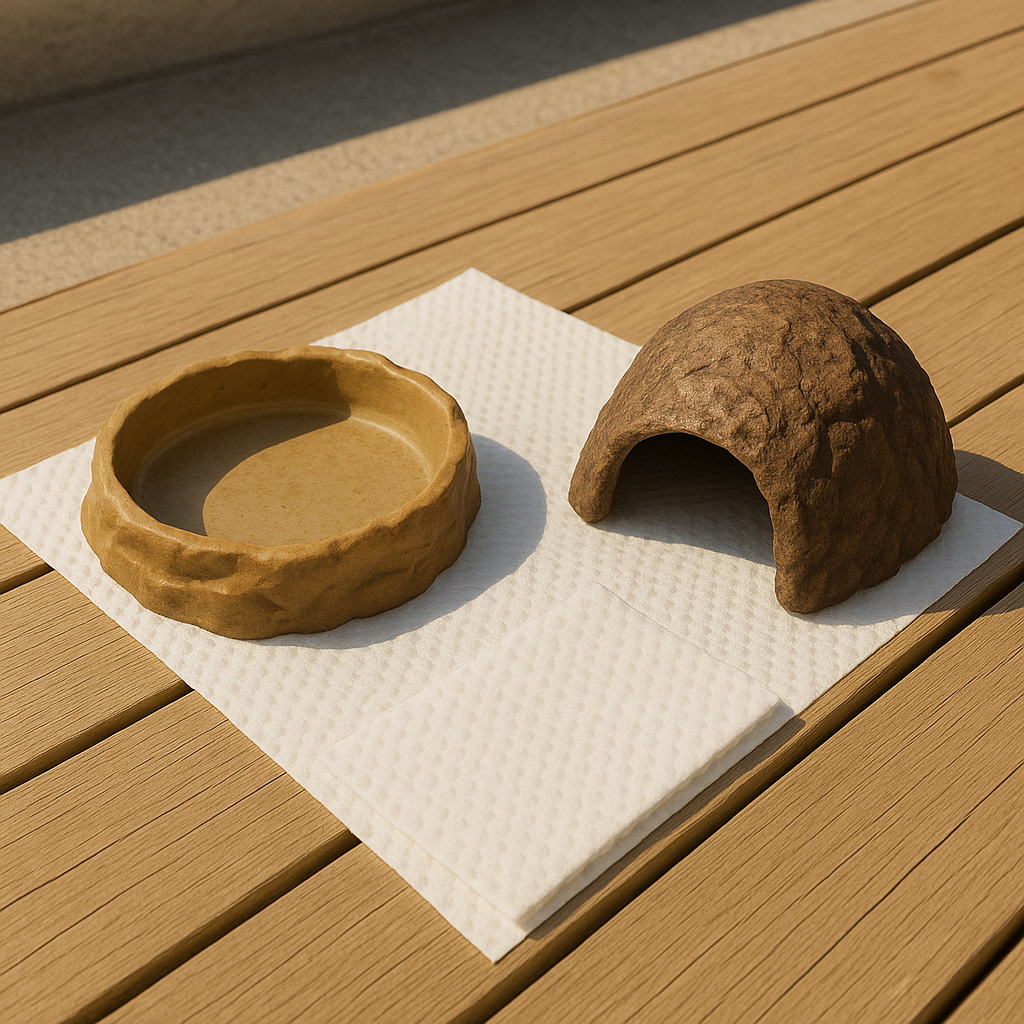 | 유리 벽면 | 1주 1회 | 베이킹소다+물 혼합액 or 파충류 전용 소독제 |