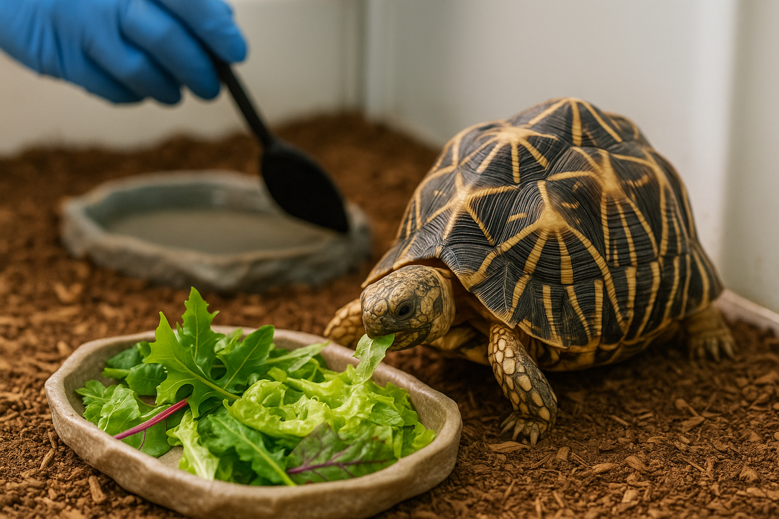 - 별거북은 과도한 건조에 약합니다. 습도가 지나치게 낮으면 호흡기 문제와 탈피 이상이 발생할 수 있습니다.